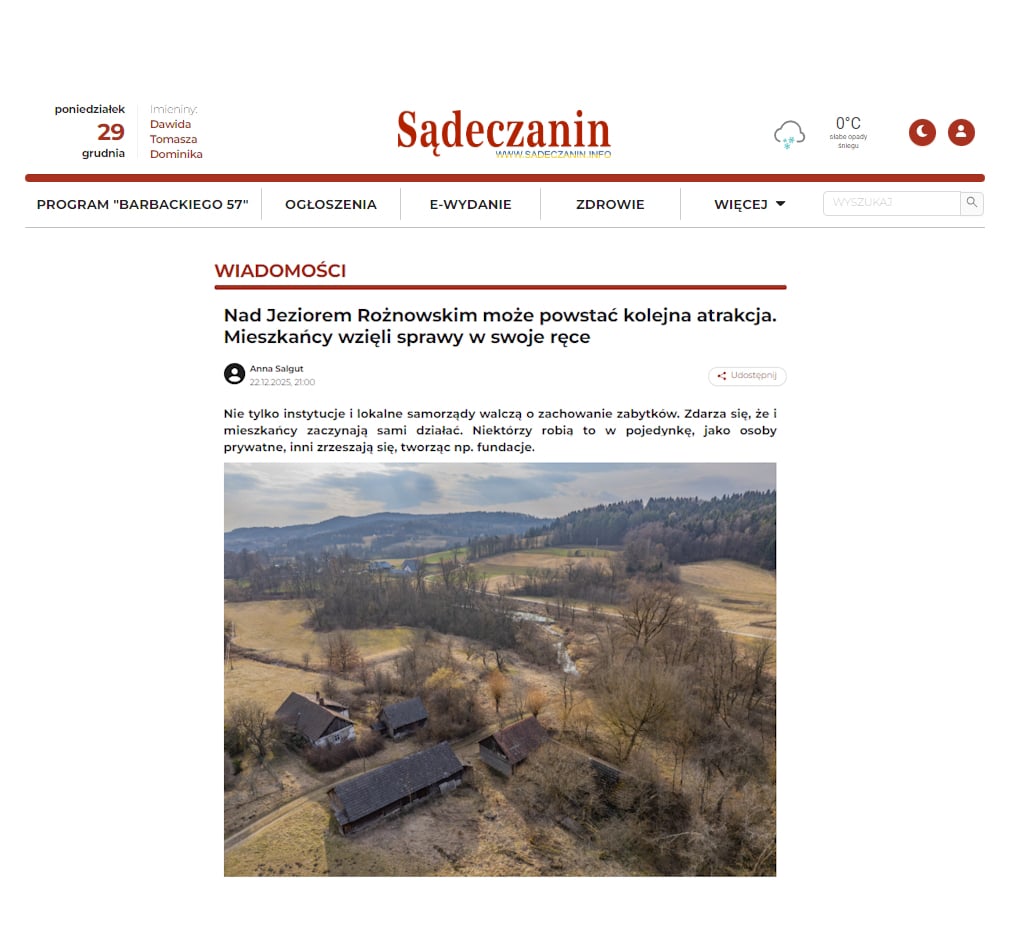 Z ogromną radością informujemy, że działania Fundacji Inspiratio Lacus zostały dostrzeżone przez regionalną prasę. Na portalu  „Sądeczanin” ukazał się właśnie obszerny artykuł autorstwa Anny Salgut, przybliżający naszą misję oraz historię miejsca, które staramy się uratować.